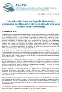 Las principales asociaciones de usuarios recurrentes de trenes de Media Distancia y Alta Velocidad en España, agrupadas en la Federación AVRAVE, han expresado en una…